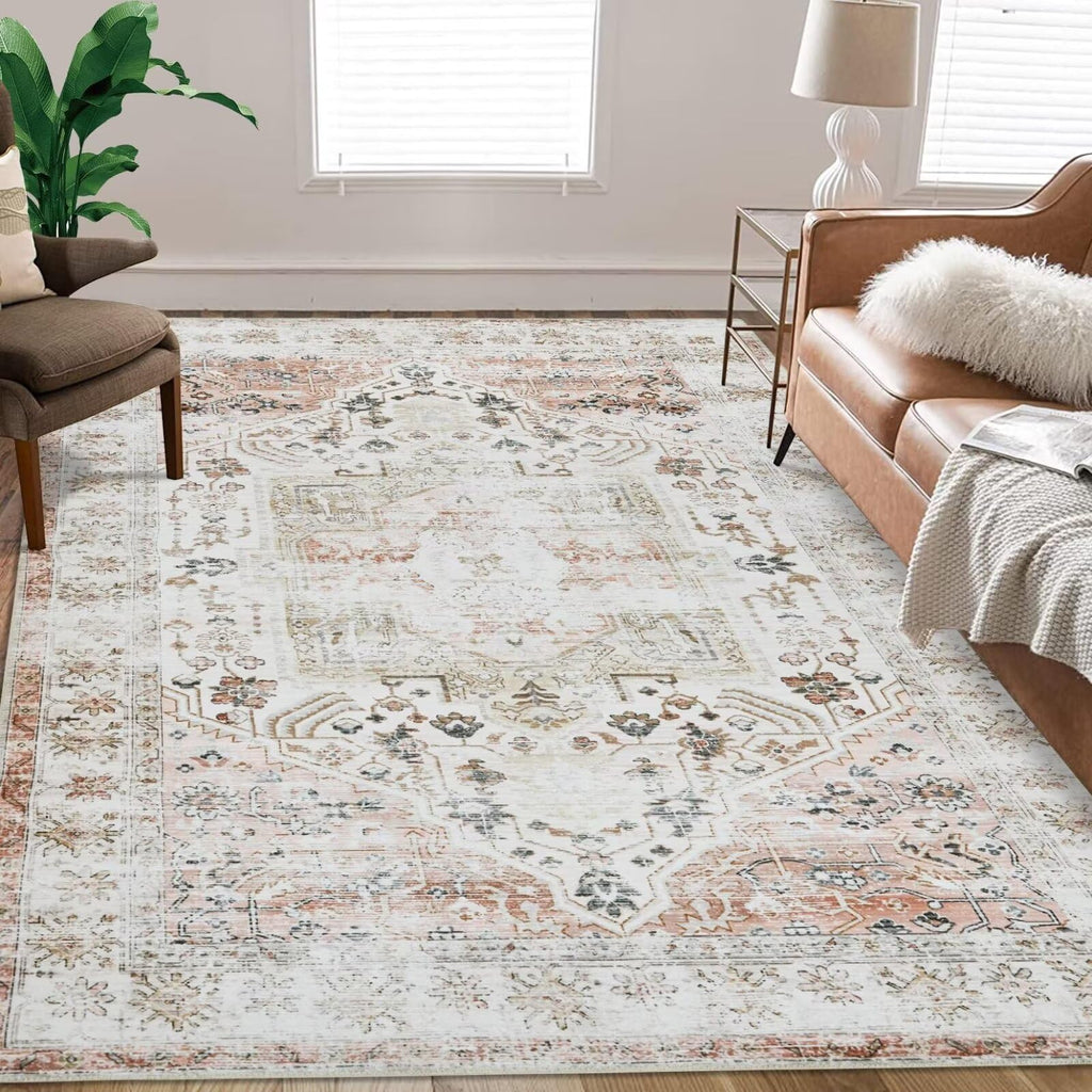 GAOMON Area Rug Vintage Rug Machine Washable Rug for Bedroom Living Room Indoor Floor Cover Foldable Lightweight Thin Rug - Taupe / 9'x12'